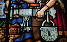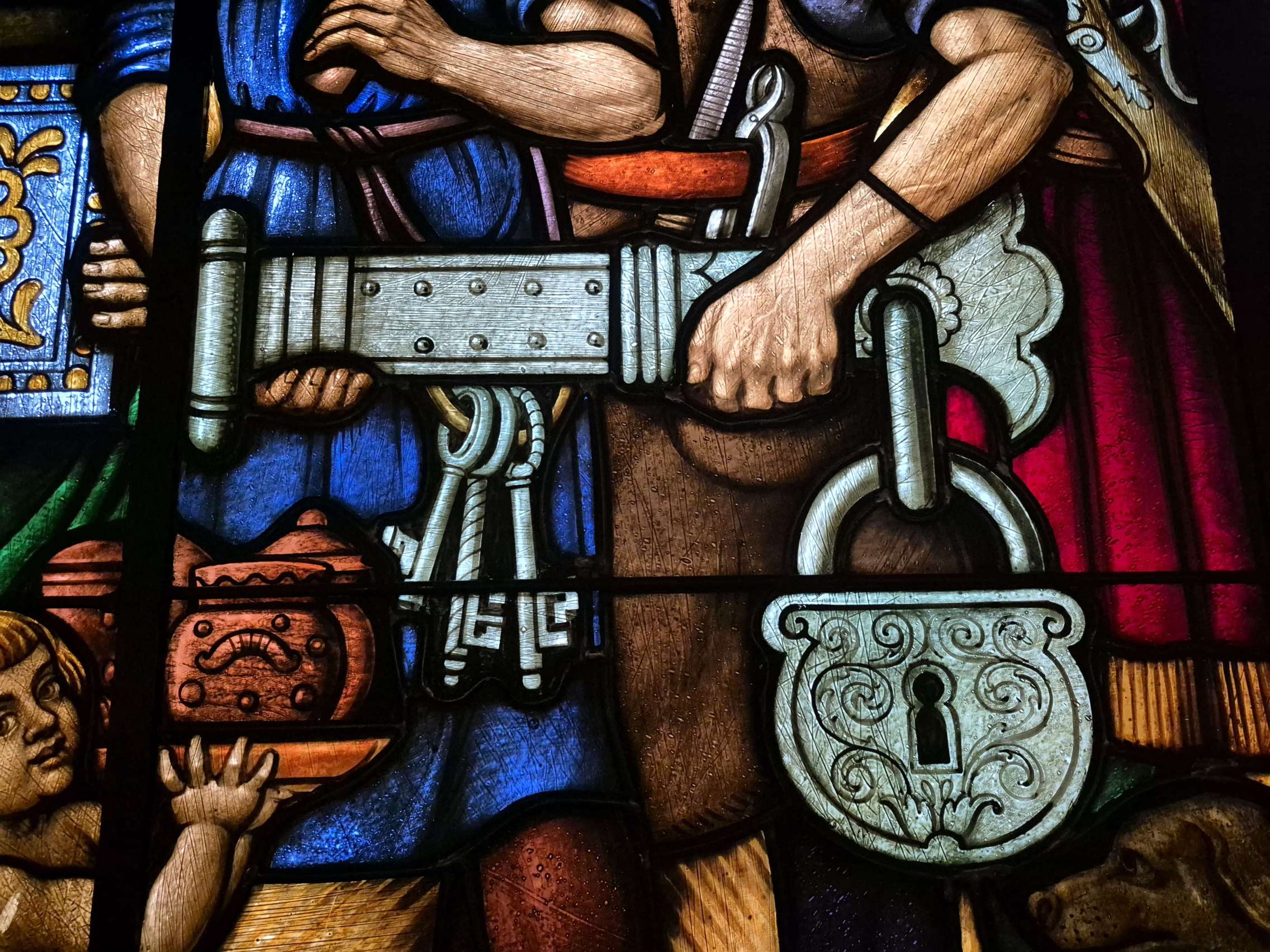 Kute „z witraża” zawiasy wieńczą wymianę drzwi ratusza