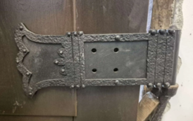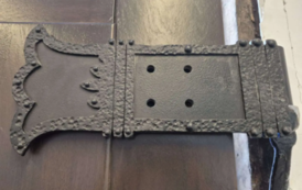 Same zawiasy to już jednak dzieło Krzysztofa Wronowskiego, szczecineckiego kowala artystycznego, który odwzorował je posiłkując się obrazem z witraża z sali obrad Rady Miasta Szczecinek. To dzieło z lat 20. XX wieku przedstawiające pochód rzemieślników, w tym kowala niosącego wspomniane zawiasy. Ich wizerunek zainspirował miejską konserwator zabytków Martę Rodziewicz, która skorzystała z okazji, jaką była wymiana drzwi, aby uzyskały one stylowy wygląd.